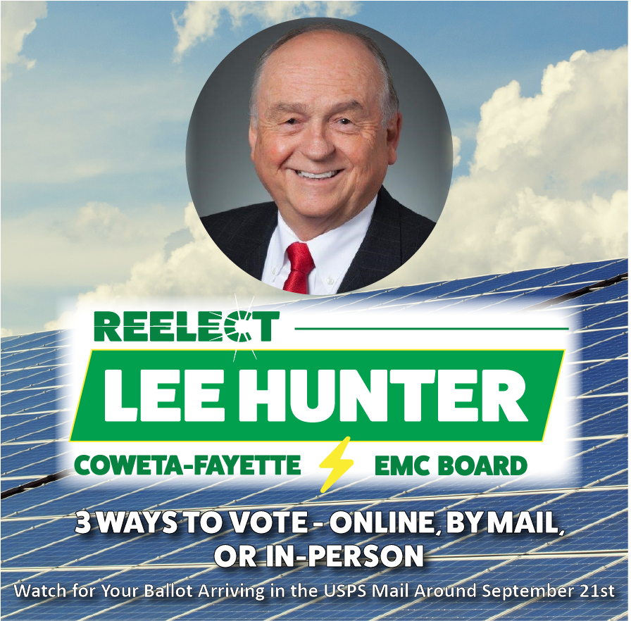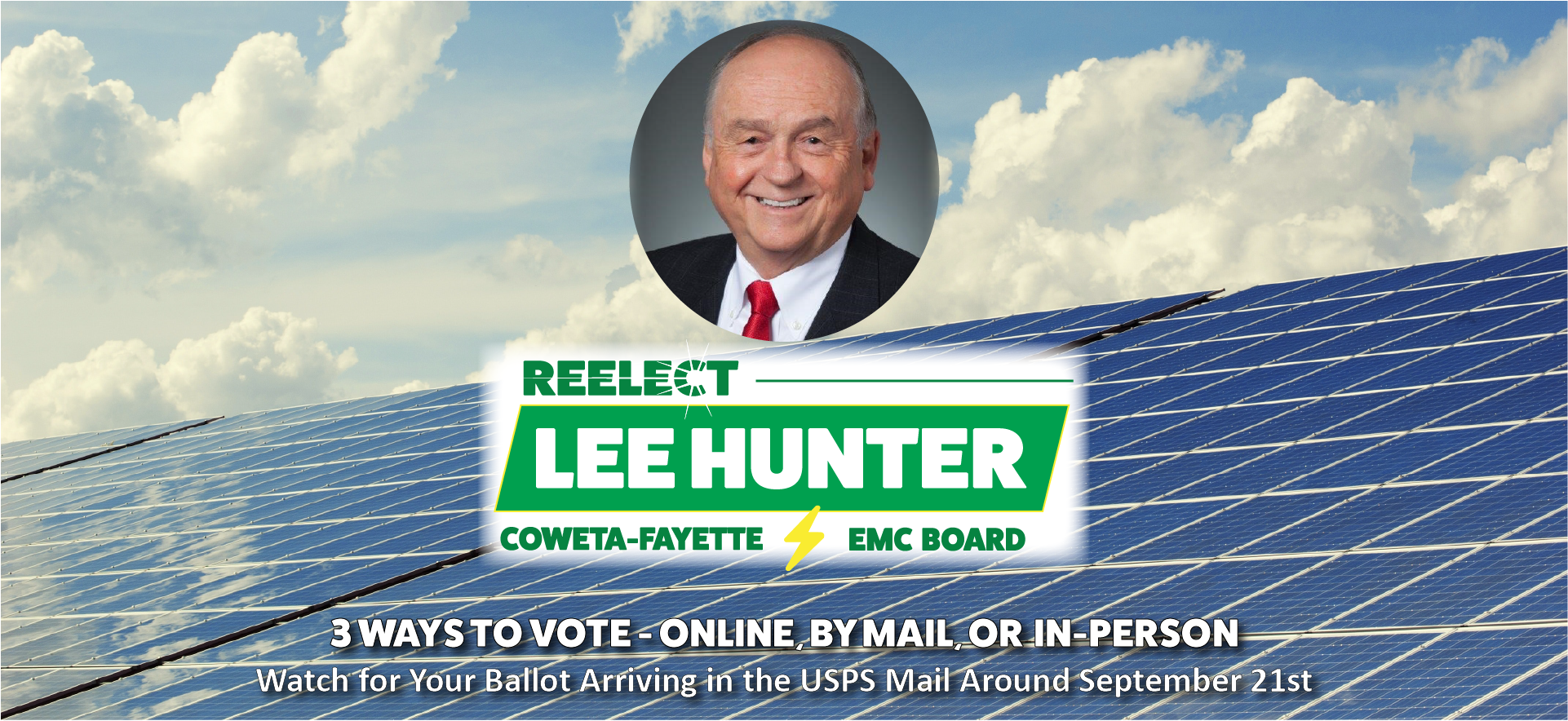 I am grateful for the opportunity to have served you, our Members, on the Board of Directors for Coweta-Fayette EMC for the past 3 and a half years. I want to continue to do that for you. The major goal of CFEMC is to provide its members with Reliable, Affordable, and Sustainable electrical energy. I want to help as we continue to do that for you. As members, you want the electricity to your home to be available 100% of the time (Reliable). Everyone wants a power bill that is as low cost as possible, and certainly competitive with other power suppliers in the area (Affordable). In addition, most members want the electricity to be produced by technologies that help protect the environment (Sustainable).